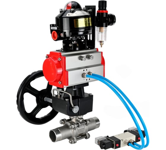 Кран шаровой DN.ru 304-304-PTFE-W-ISO-H Ду125 Ру16 пневмопривод DA-130, пневмораспределитель (2EM) 220VAC, редуктор HDM-3, БКВ LSB-510, БПВ D160-54243