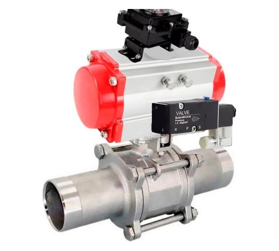 Кран шаровой DN.ru 304-304-PTFE-W-ISO-H Ду125 Ру16 пневмопривод SA-210, пневмораспределитель 24VDC, БКВ LSB-410 D160-54502