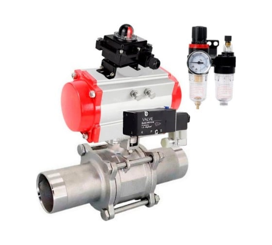 Кран шаровой DN.ru 304-304-PTFE-W-ISO-H Ду125 Ру16 пневмопривод SA-210, пневмораспределитель (2EM) 220VAC, БКВ LSB-410, БПВ D160-54706