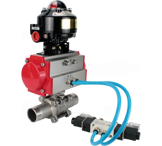 Кран шаровой DN.ru 304-304-PTFE-W-ISO-H Ду40 Ру40 пневмопривод DA-065, пневмораспределитель (2EM) 220VAC, БКВ LSB-510 D160-54184