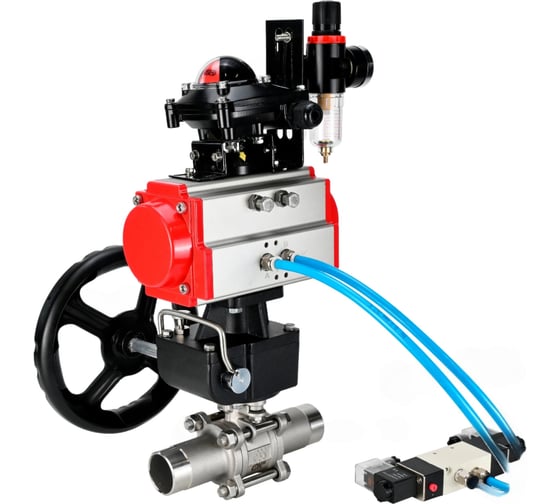 Кран шаровой DN.ru 304-304-PTFE-W-ISO-H Ду65 Ру25 пневмопривод DA-083, пневмораспределитель (2EM) 220VAC, редуктор HDM-2, БКВ LSB-210, БПВ D160-54222