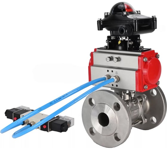 Кран шаровой DN.ru 316-316-FP-F-ISO-H Ду100 Ру25, пневмопривод, пневмораспределитель, БКВ D160-65803