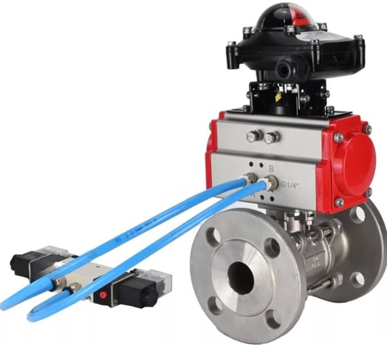 Кран шаровой DN.ru 316-316-FP-F-ISO-H Ду100 Ру25, пневмопривод, пневмораспределитель, БКВ D160-65851