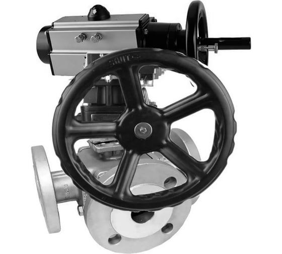 Кран шаровой DN.ru 316-316-PTFE-16 ISO 3-ходовой, T-тип, Ду100, Ру16, пневмораспределитель, дублёр D160-34254