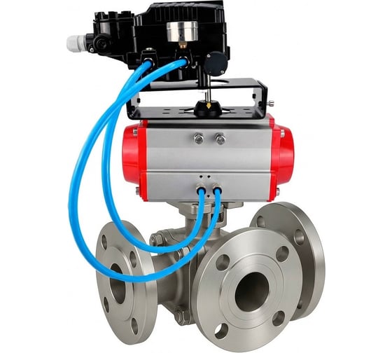 Кран шаровой DN.ru 316-316-PTFE-FP-3L-F-ISO-H Ду50 Ру16 HYMT, 3-ходовой L-тип фланцевый, пневмопривод DA-065, пневмопозиционер EPRP1-NU-Fb-08 с обратной связью D160-7749 D160-77491