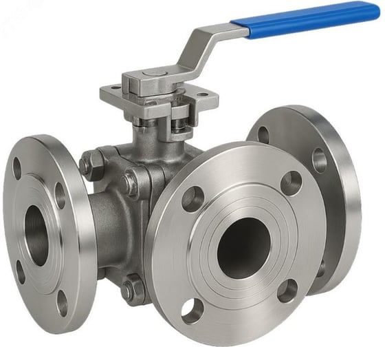 Кран шаровой DN.ru 316-316-PTFE-FP-3T-F-ISO-H Ду50 Ру16 HYMT, 3-ходовой T-тип фланцевый, с ISO фланцем и рукояткой D160-75914