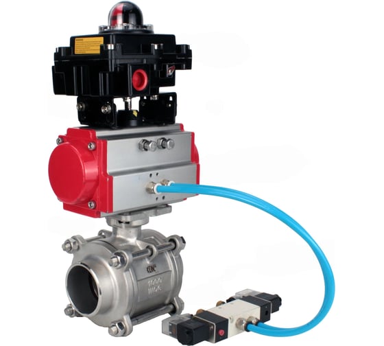 Кран шаровой DN.ru 316-316-PTFE-FP-W-ISO-H WDVF Ду40 Ру40, пневмопривод DA-065, пневмораспределитель 220VAC, БКВ LSB-410 (EX) D160-73182