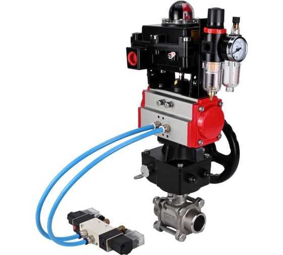 Кран шаровой DN.ru 316-316-PTFE-FP-W-ISO-H WDVF Ду40 Ру40, пневмопривод DA-065, пневмораспределитель 220VAC, БКВ LSB-410 (EX), руч. дубл. HDM-1, БПВ D160-73233