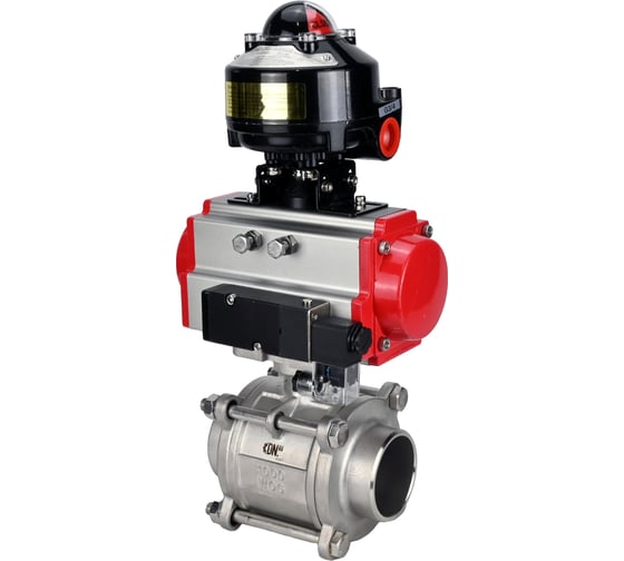 Кран шаровой DN.ru 316-316-PTFE-FP-W-ISO-H WDVF Ду40 Ру40, пневмопривод DA-065, пневмораспределитель 220VAC, БКВ LSB-510 (EX) D160-73180