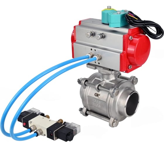 Кран шаровой DN.ru 316-316-PTFE-FP-W-ISO-H WDVF Ду40 Ру40, пневмопривод DA-065, пневмораспределитель 220VAC, магнитный переключатель МППП-200 D160-73287