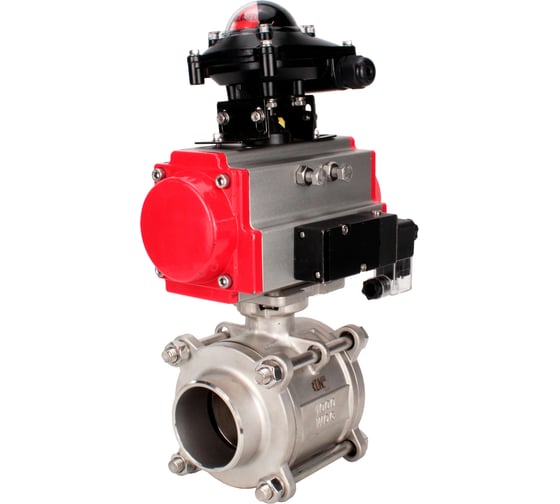Кран шаровой DN.ru 316-316-PTFE-FP-W-ISO-H WDVF Ду40 Ру40, пневмопривод DA-065, пневмораспределитель 24VDC, БКВ LSB-210 D160-73187