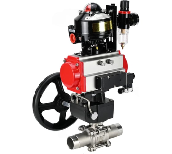 Кран шаровой DN.ru 316-316-PTFE-W-ISO-H Ду50 Ру40 пневмопривод DA-083, пневмораспределитель 220VAC, редуктор HDM-2, БКВ LSB-510, БПВ D160-55130