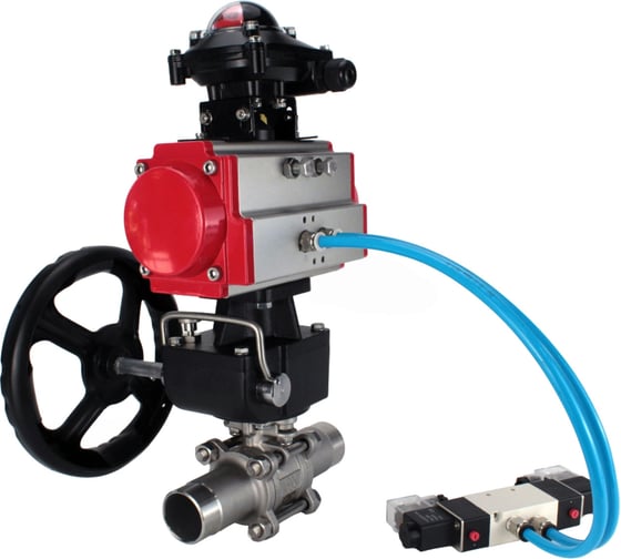 Кран шаровой DN.ru 316-316-PTFE-W-ISO-H Ду50 Ру40 пневмопривод DA-083, пневмораспределитель (2EM) 220VAC, редуктор HDM-2, БКВ LSB-210 D160-55388