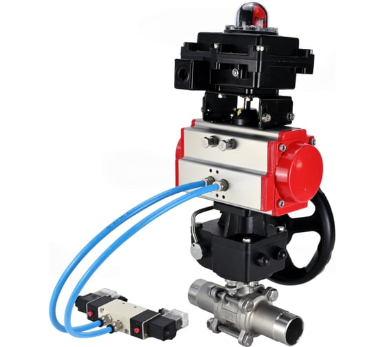 Кран шаровой DN.ru 316-316-PTFE-W-ISO-H Ду50 Ру40 пневмопривод DA-083, пневмораспределитель (2EM) 220VAC, редуктор HDM-2, БКВ LSB-410 D160-55544