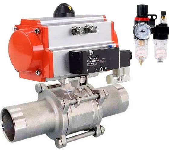 Кран шаровой DN.ru 316-316-PTFE-W-ISO-H Ду50 Ру40 пневмопривод SA-105, пневмораспределитель 220VAC, БПВ D160-55693