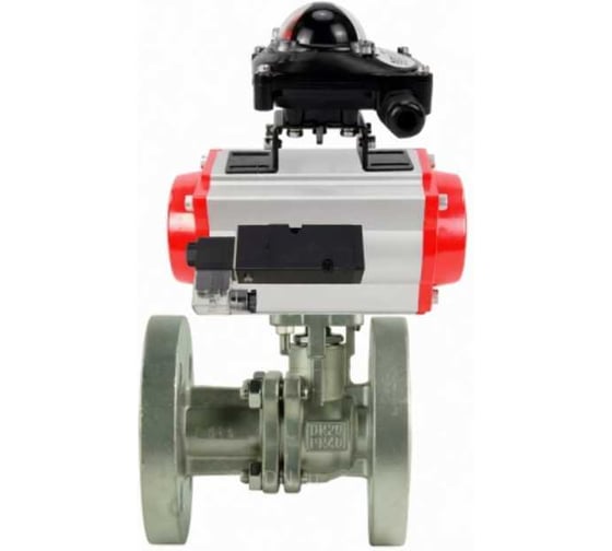 Кран шаровой DN.ru КШ.Ф.П.316.200 Ду80 Ру16 фланцевый, пневмопривод DA-083, пневмораспределитель PND2-S1EM-52-1NC-J08-220VAC, БКВ LSB-210-02NM12-220/24 D160-79620