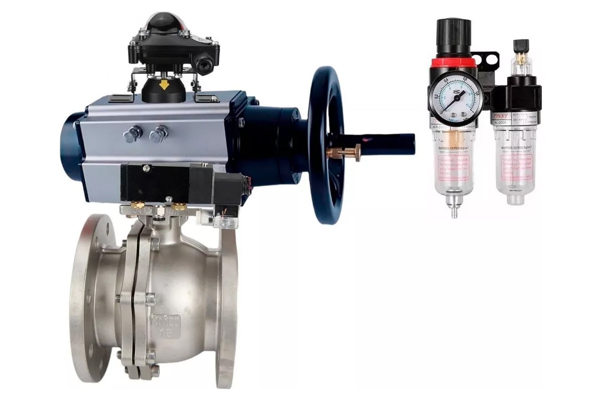Шаровой кран DN.ru КШФП.316.200 Ду100 Ру16 с пневмоприводом, пневмораспределителем, БПВ, БКВ D160-30600