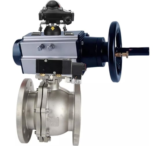 Шаровой кран DN.ru КШФП.316.200 Ду100 Ру16 с пневмоприводом, пневмораспределителем, БКВ D160-24339
