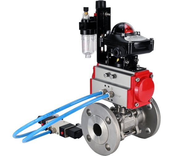 Кран шаровой DN.ru КШФПТ 304.180 Ду100 Ру16 пневмопривод DA-105, пневмораспределитель 220VAC, БКВ LSB-210, БПВ D160-72133