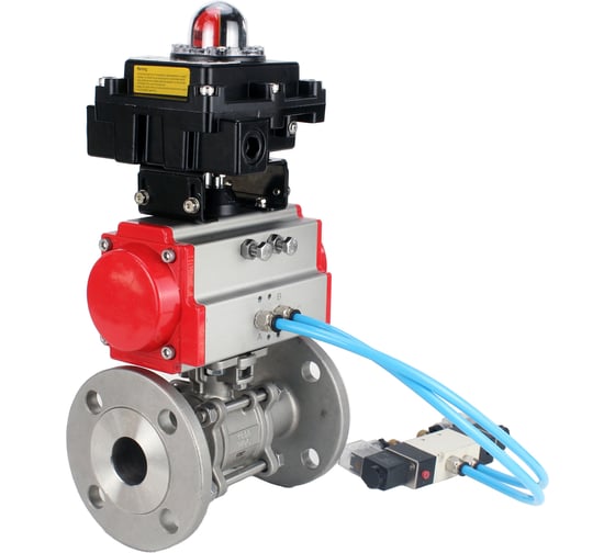 Кран шаровой DN.ru КШФПТ 304.180 Ду100 Ру16 пневмопривод DA-105, пневмораспределитель 220VAC, БКВ LSB-410 (EX) D160-72805