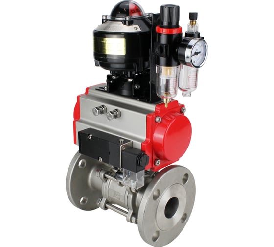Кран шаровой DN.ru КШФПТ 304.180 Ду100 Ру16 пневмопривод DA-105, пневмораспределитель 220VAC, БКВ LSB-510 (EX), БПВ D160-72262