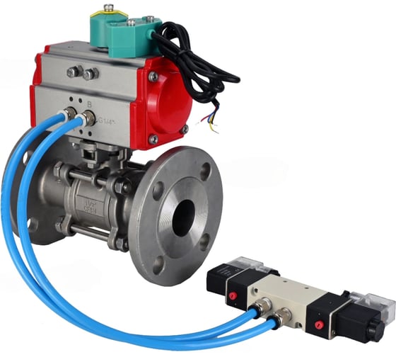 Кран шаровой DN.ru КШФПТ 304.180 Ду100 Ру16 пневмопривод DA-105, пневмораспределитель 220VAC, магнитный переключатель МППП-200 D160-71893