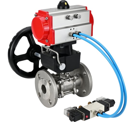 Кран шаровой DN.ru КШФПТ 304.180 Ду100 Ру16 пневмопривод DA-105, пневмораспределитель 220VAC, ручной дублёр HDM-3 D160-72474