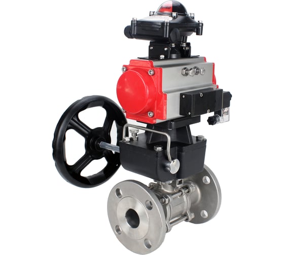 Кран шаровой DN.ru КШФПТ 304.180 Ду100 Ру16, пневмопривод DA-105, пневмораспределитель 24VDC, БКВ LSB-210, ручной дублёр HDM-3 D160-72564