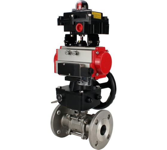 Кран шаровой DN.ru КШФПТ 304.180 Ду100 Ру16 пневмопривод DA-105, пневмораспределитель 24VDC, БКВ LSB-410 (EX), ручной дублёр HDM-3 D160-72567