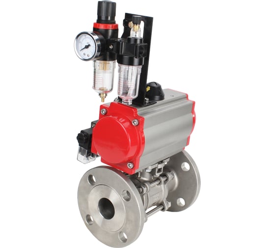 Кран шаровой DN.ru КШФПТ 304.180 Ду100 Ру16 пневмопривод SA-140, пневмораспределитель 220VAC, БПВ D160-72048