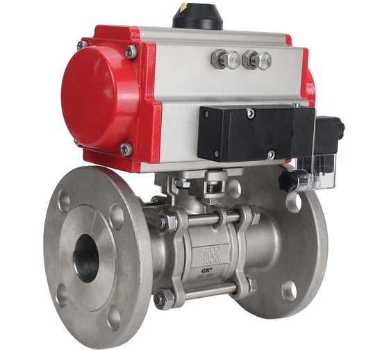 Кран шаровой DN.ru КШФПТ 304.180 Ду100 Ру16 пневмопривод SA-140, пневмораспределитель 220VAC D160-72610
