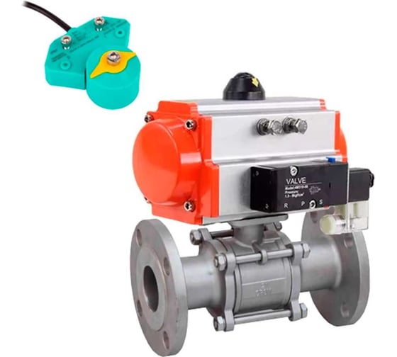 Кран шаровой DN.ru КШФПТ.304.180 Ду32 Ру40, пн.привод, пневмораспределитель, магнитный перекл-ль D160-62505