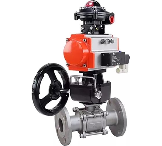 Кран шаровой DN.ru КШФПТ 304.180 Ду50 Ру40 пневмопривод DA-065, пневмораспределитель 220VAC, БКВ LSB-510 EX), ручной дублёр HDM-1 D160-72520