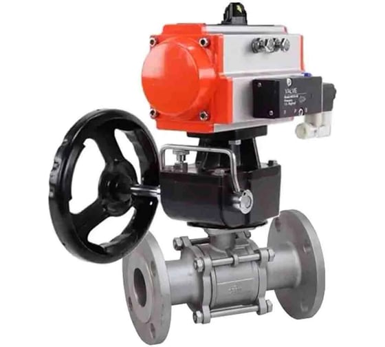 Кран шаровой DN.ru КШФПТ 316.180 Ду100 Ру16 пневмопривод DA-105, пневмораспределитель 220VAC, ручной дублёр HDM-3 D160-72477