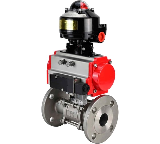 Кран шаровой DN.ru КШФПТ 316.180 Ду100 Ру16 пневмопривод SA-140, пневмораспределитель 24VDC, БКВ LSB-510 (EX) D160-72926