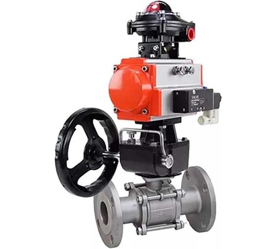 Кран шаровой DN.ru КШФПТ 316.180 Ду65 Ру25 пневмопривод DA-083, пневмораспределитель 220VAC, БКВ LSB-510 (EX), ручной дублёр HDM-2 D160-72527