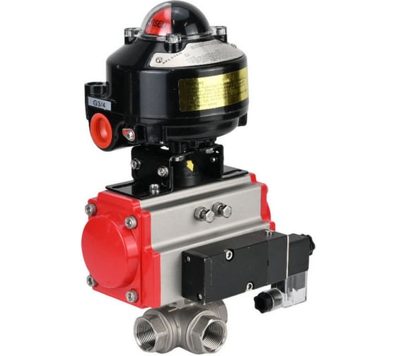 Кран шаровой DN.ru КШФПТ 316.180 Ду65 Ру25 пневмопривод SA-105, пневмораспределитель 220VAC, БКВ LSB-510 (EX) D160-72792