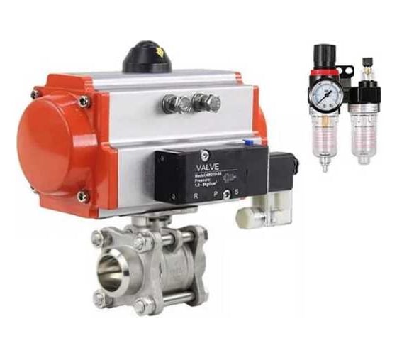 Кран шаровой DN.ru КШПП 316.200-ISO Ду15 Ру63, пневмопривод SA-065, пневмораспределитель 220VAC, БПВ D160-75000