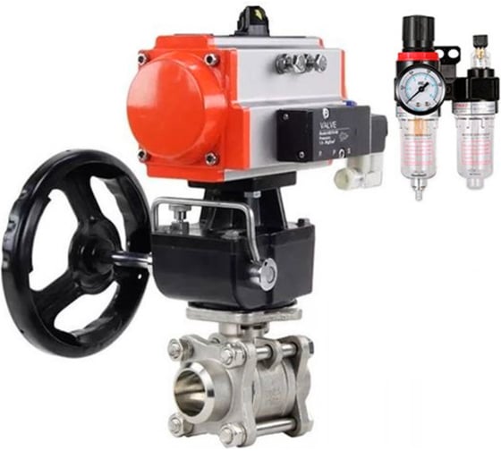 Кран шаровой DN.ru КШПП 316.200-ISO Ду50 Ру40, пневмопривод DA-083, пневмораспределитель 220VAC, дублёр HDM-2, БПВ D160-74447