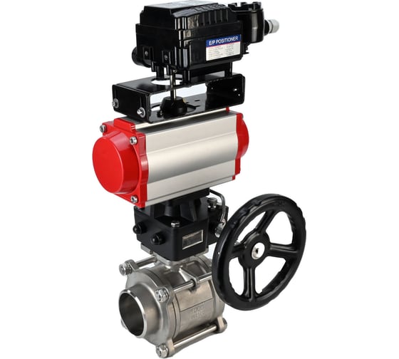 Кран шаровой DN.ru КШПП 316.200-ISO полнопроходной под приварку с пневмоприводом DA-052, поворотным позиционером EPRP1-NU-0-08, ручным дублером HDM-1.
