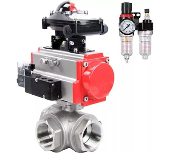 Кран шаровой DN.ru RP.SS316.200.MM ISO 3-ходовой, T-тип, Ду100, Ру63, БКВ взрывозащищенный, пневмораспределитель, БПВ D160-19926