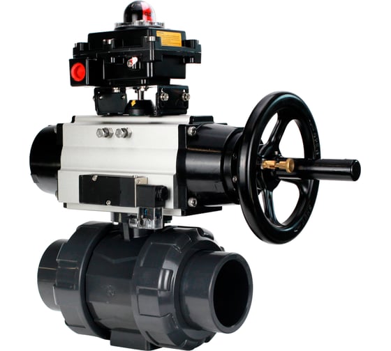 Кран шаровой DN.ruНПВХ-НПВХ-E-FP-GRM-ISO Дн25 Ру10, пневмопривод, пневмораспред., БКВ D160-66643