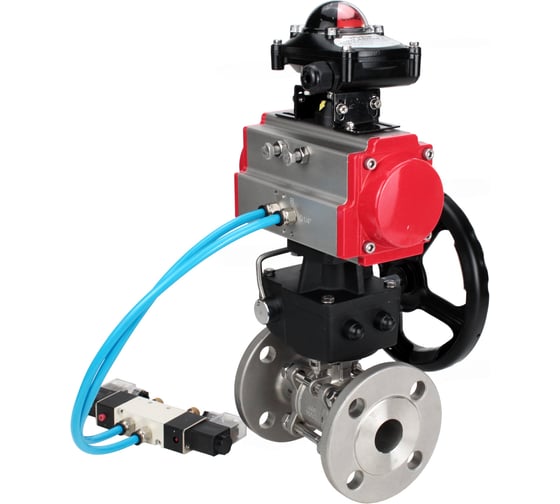 Кран шаровой DN.ru КШФПТ 304.180 Ду100 Ру16 пневмопривод DA-105, пневмораспределитель 220VAC, БКВ LSB-210, ручной дублёр HDM-3 D160-72534