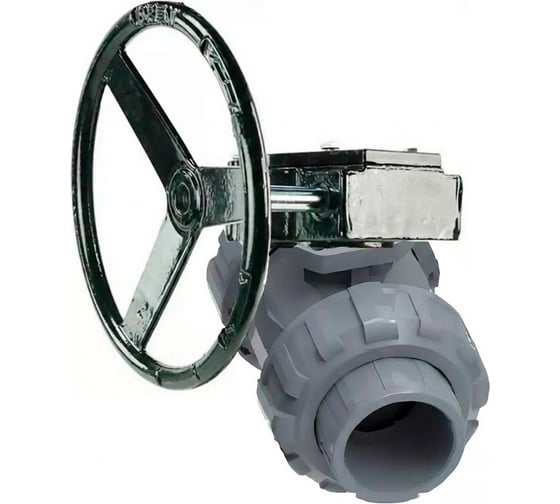 Кран шаровой НПВХ-НПВХ-E-FP-GRM-ISO Дн50 Ру10, клеевой, редуктор RDN-2 DN.ru D160-65167