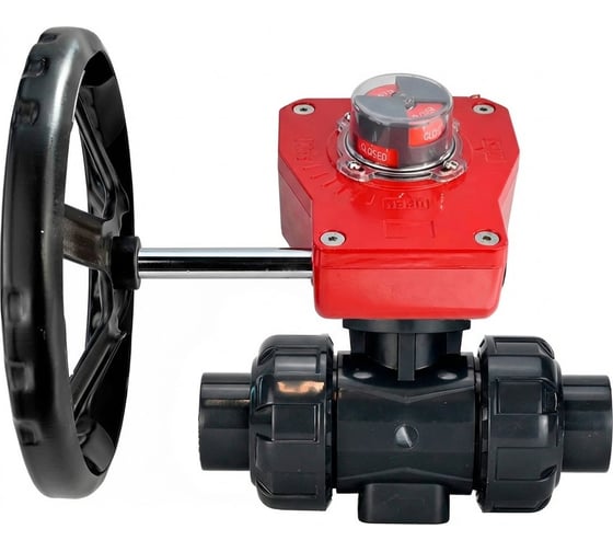 Кран шаровой НПВХ-НПВХ-E-FP-GRM-ISO Дн65 Ру10, клеевой, редуктор HGBF-1 с указателем положения и датчиком обратной связи DN.ru D160-77840