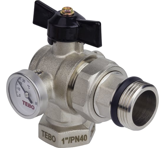 Кран шаровой TEBO с термометром угловой ВН/НАР 1 черная бабочка (2/24) T-КШ.Т.552.1.ЧБ.CN