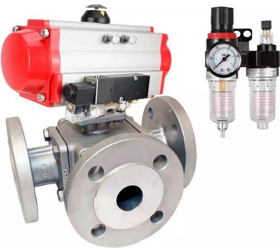 Кран шаровый DN.ru 316-316-PTFE-16 ISO 3-ход T-тип Ду20 Ру16, пневмораспределитель, БПВ D160-34719