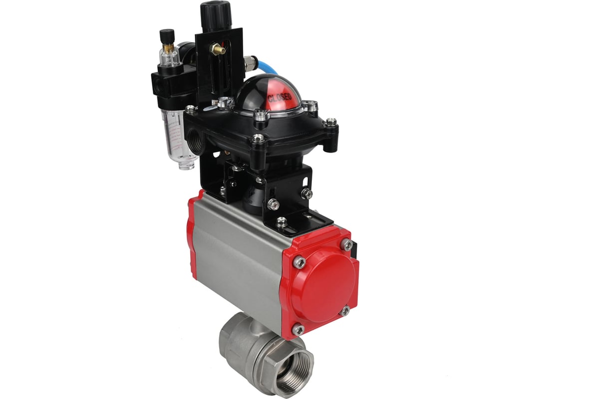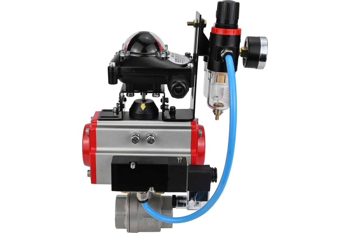 Кран шаровой DN.ru КШМП.316.230-ISO с пневмоприводом SA-160, пневмораспределителем PND2-S1EM-52-1NC-J08-24VDC, БПВ APU1-10-40-V08, БКВ LSB-210-02NM12-220/24.