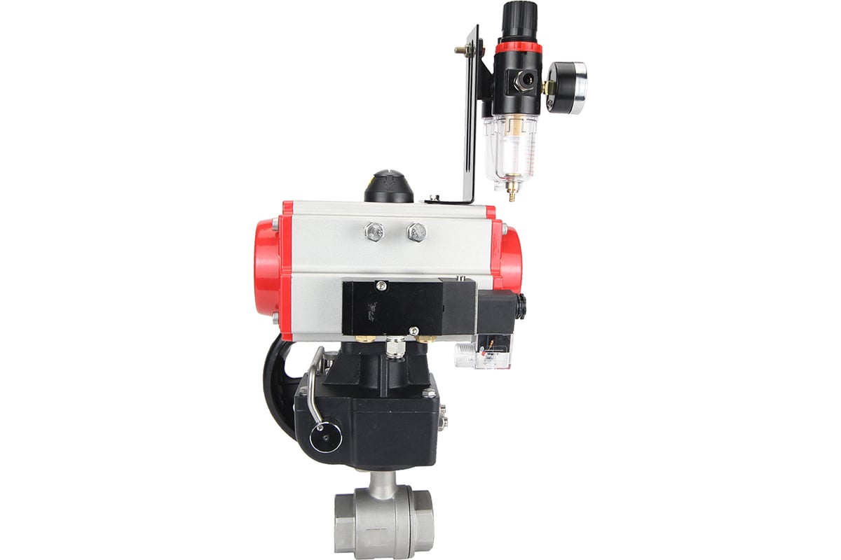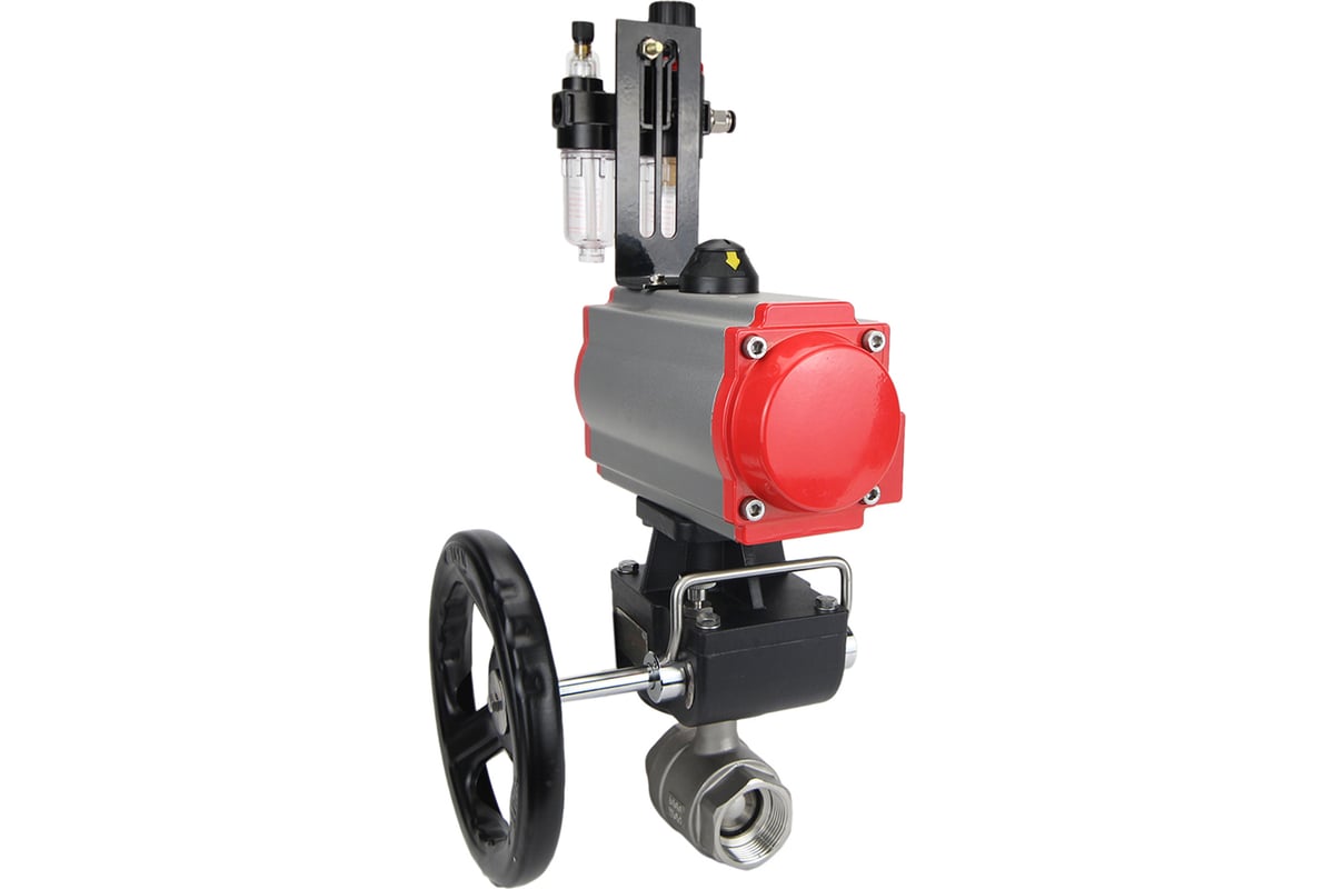 Кран шаровой DN.ru КШМП.316.230-ISO с пневмоприводом DA-105, пневмораспределителем PND2-S1EM-52-1NC-J08-24VDC, БПВ APU1-10-40-V08, ручным дублером HDM-3.