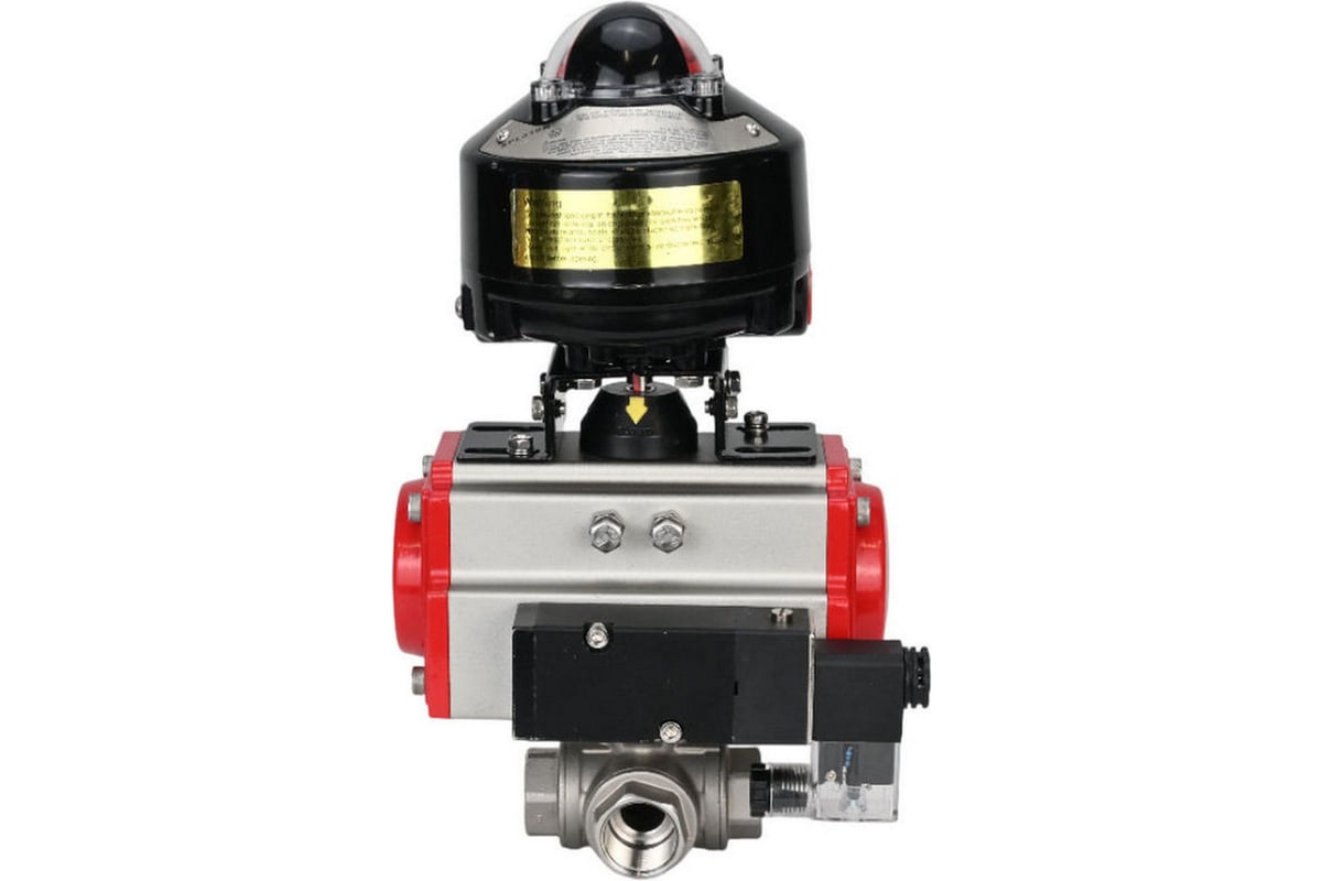 Шаровой кран DN.ru КШФПТ-ISO.316.180 Ду20 Ру40 с пневмоприводом, пневмораспределителем, БКВ D160-30046
